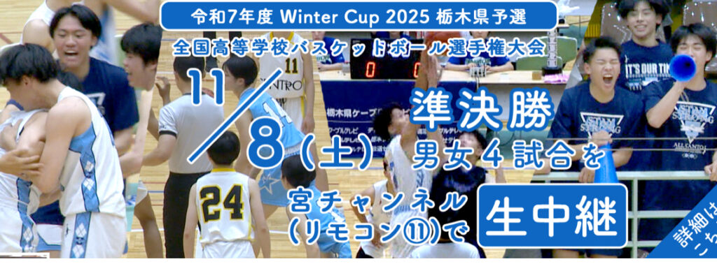 第78回 全国高等学校バスケットボール選手権大会栃木県予選会 (SoftBank ウインターカップ2025 栃木県予選)の男女決勝をバスケットLIVEでライブ配信します。